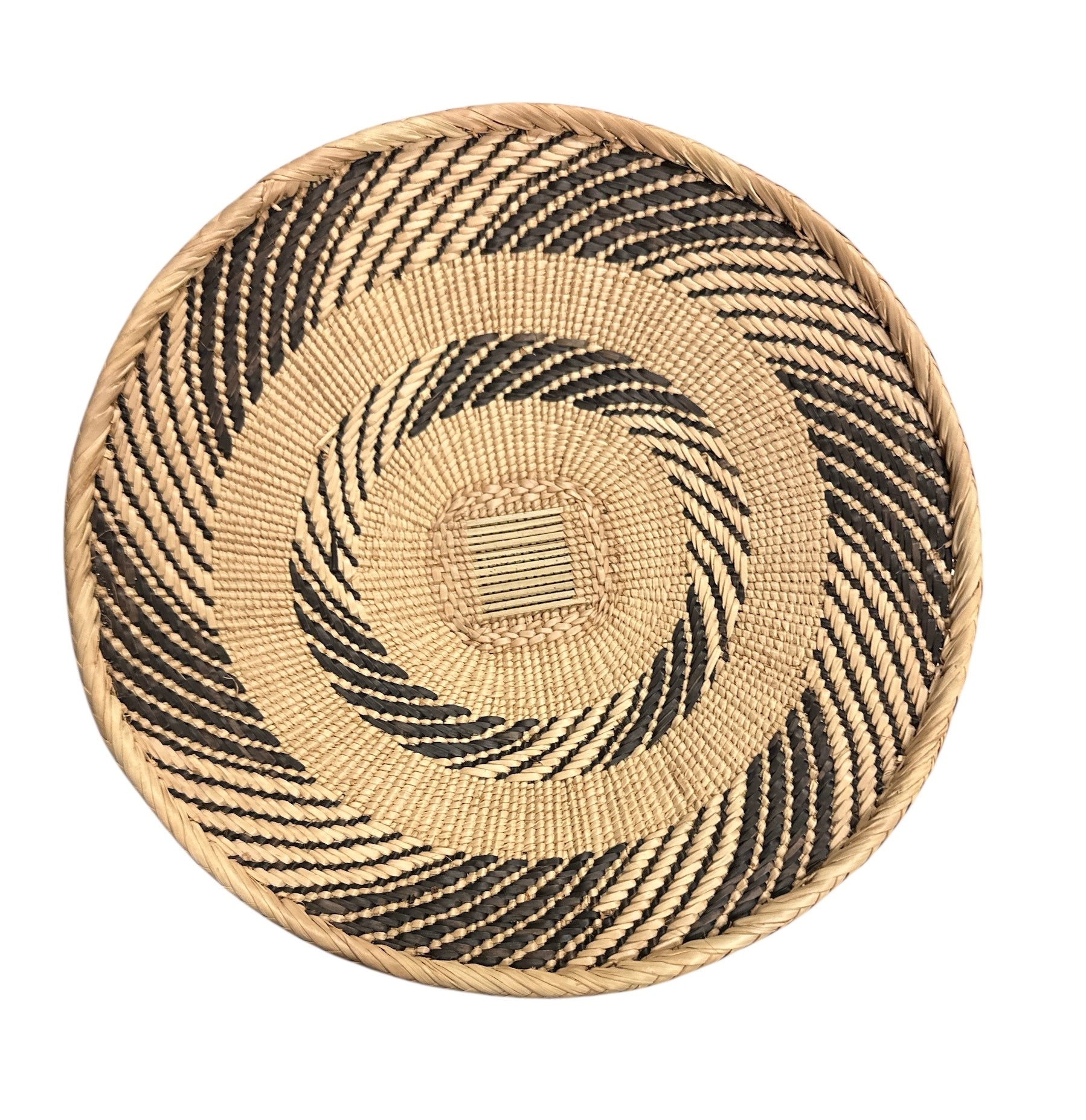 Traditionally used as a winnowing basket, Binga baskets are popular for decorating a wall. They are light and easy to hang, and they have neutral colors beautiful geometric designs. They are created from naturally dyed palm leaves.