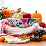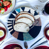 RL5023This perfect center piece Rwanda basket, African basket, Boho basket made of sweet grass and sisal. It can be used as bread/fruit bowl,wall art, wall decor. It comes with a loop in the back which, can be used as a wall hanging basket or given out as a gift. It's a stunning one-of-a-kind pieces rich in cultural meaning and purpose -- a perfect center piece, bread/fruit bowl, or wall hanging. Whether as a wall hanging or displayed as a centerpiece, these traditional baskets lend versatility around any home. Each bowl is intricately hand woven by The African Home Goods in Rwanda