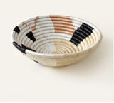 RM503This perfect center piece Rwanda basket, African basket, Boho basket made of sweet grass and sisal. It can be used as bread/fruit bowl, wall art, wall decor. It comes with a loop in the back which, can be used as a wall hanging basket or given out as a gift. It's a stunning one-of-a-kind pieces rich in cultural meaning and purpose -- a perfect center piece, bread/fruit bowl, or wall hanging. Whether as a wall hanging or displayed as a centerpiece, these traditional baskets lend versatility around any home. Each bowl is intricately hand woven by The African Home Goods in Rwanda