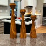 Tapered Diamond Candlestick Holder | Wooden Candle Holders Cognac