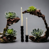 Totem Pine Candlestick Holder | Wooden Candle Holders-Black