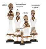 We work with artisans who have migrated from Cameroon to South Africa. Each doll is handmade with love and it shows in the detail. They are crafted from a variety of wood, beads, shells and metal.