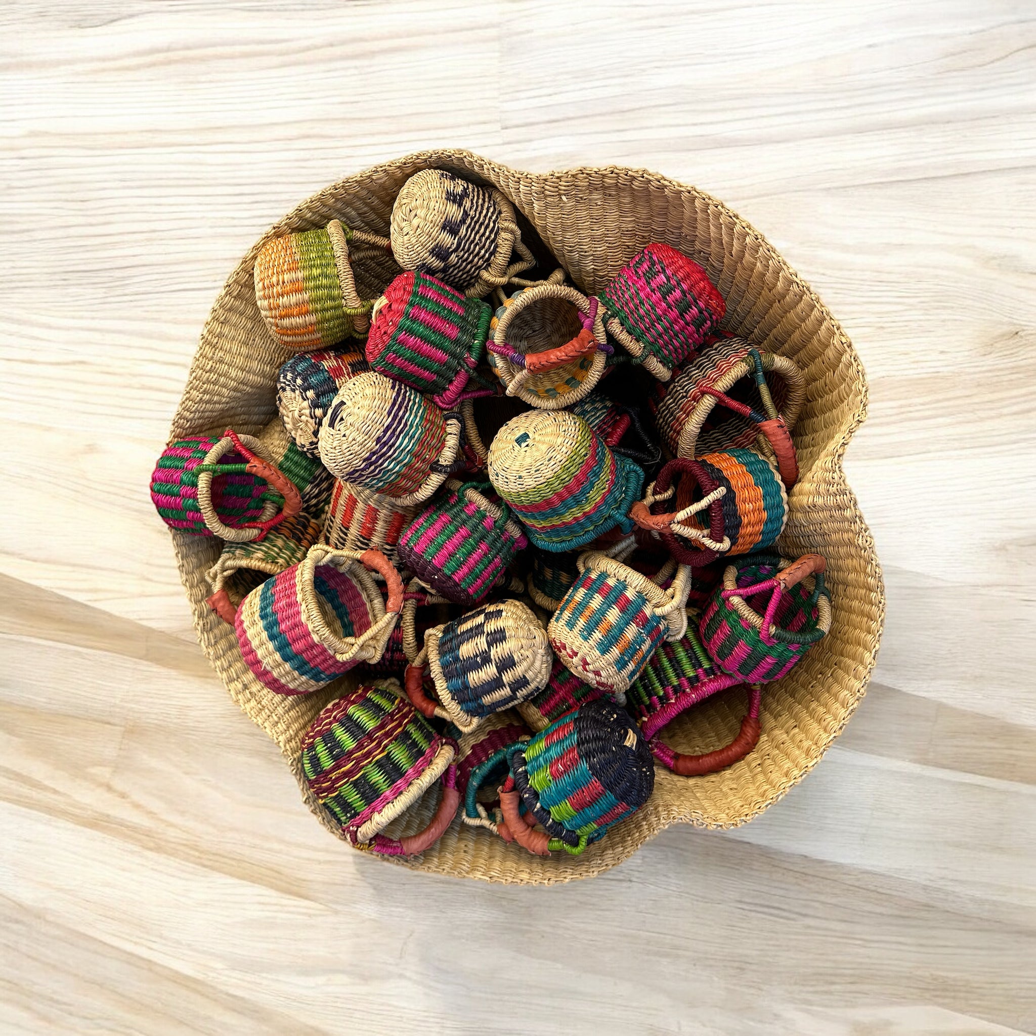 Gratitudes are made from grass left over from larger baskets, with just a few examples shown here.
