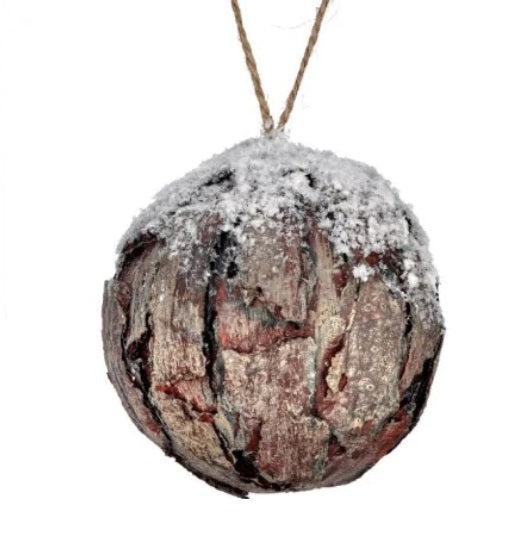 Embrace the natural beauty of the season with our stunning bark wood ball ornament. Crafted to resemble a piece of rustic woodland, this unique ornament features delicate snow dusting that captures the essence of a winter wonderland. Perfect for adding a touch of cozy charm to your Christmas tree, this ornament brings the beauty of nature indoors, making it a must-have for your holiday decor. Celebrate the magic of Christmas with this enchanting piece that evokes warmth and nostalgia.