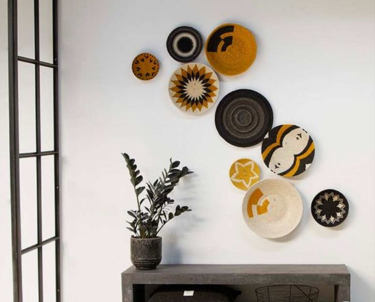 The material is sisal, a fibre that comes from the tropical plant Agave. Each fiber is harvested, dried, hand dyed, dried again, then rolled against the weaver's leg until the perfect thread is drawn out. An average of 30-40 hours per basket makes these one of the most labor intensive of all African baskets for their size.
