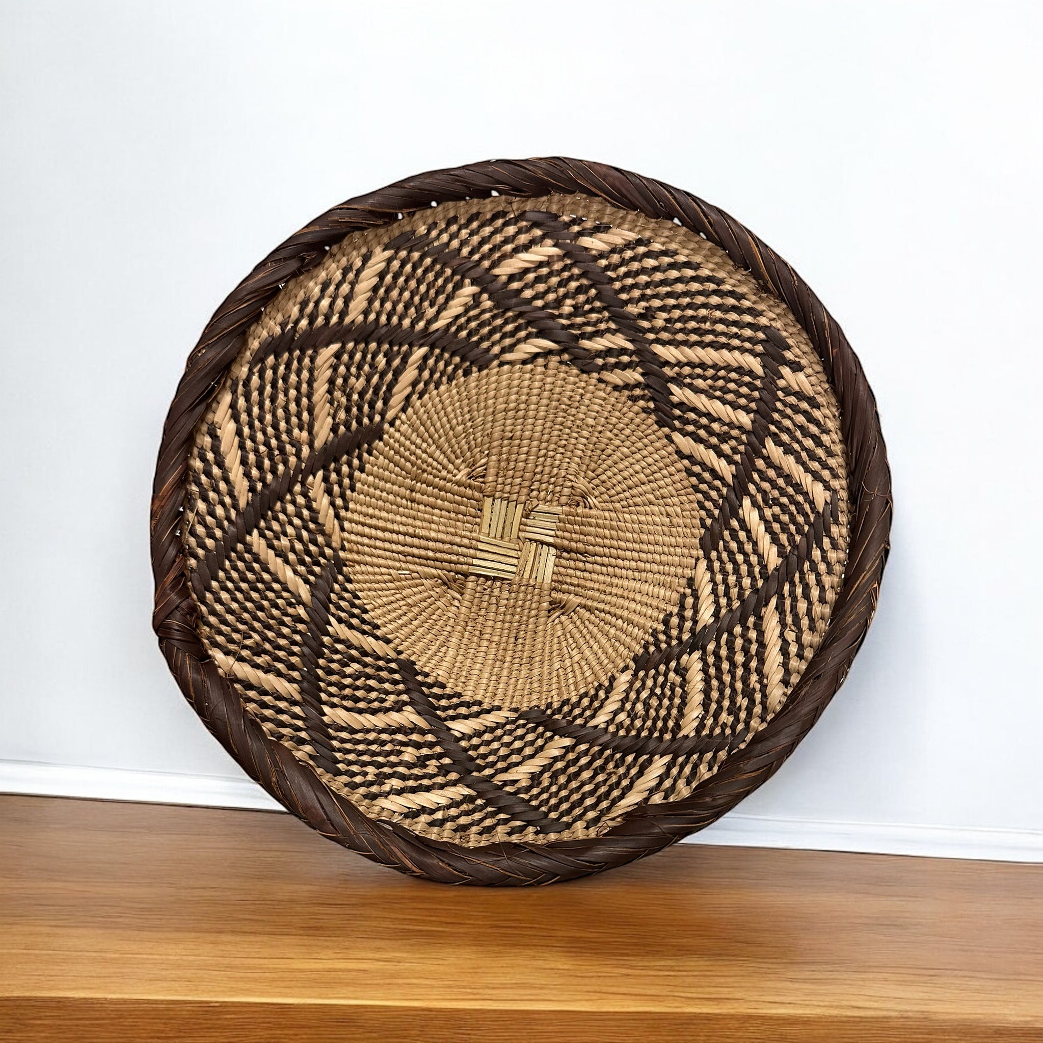Traditionally used as a winnowing basket, Binga baskets are popular for decorating a wall. They are light and easy to hang, and they have neutral colors beautiful geometric designs. They are created from naturally dyed palm leaves.